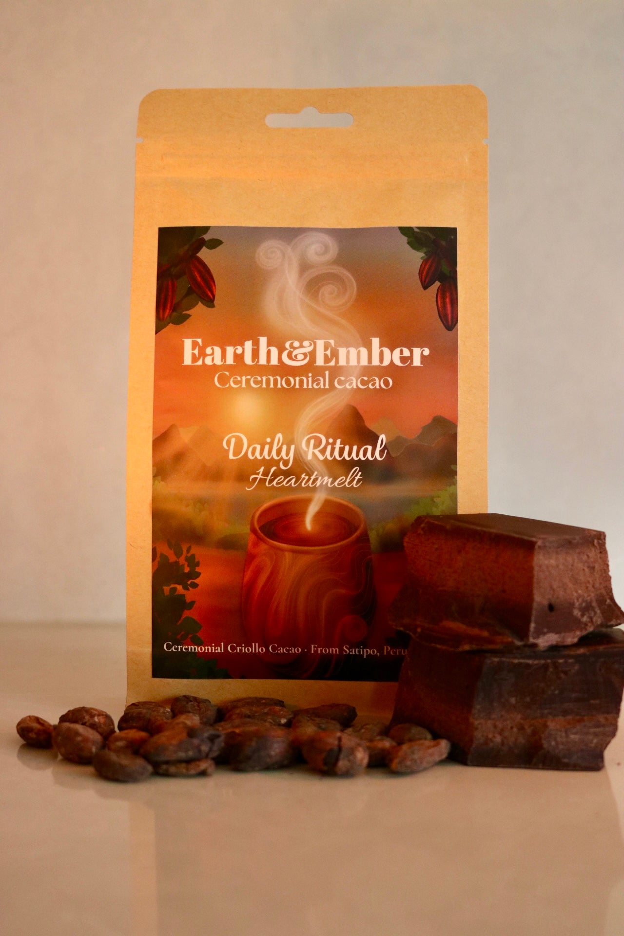 Heartmelt är tänkt som en daglig ritual - en stilla stund för dig själv, en kopp i taget. Vid varje köp ingår en guidad kakao-ceremoni och meditation från Earth & Ember.