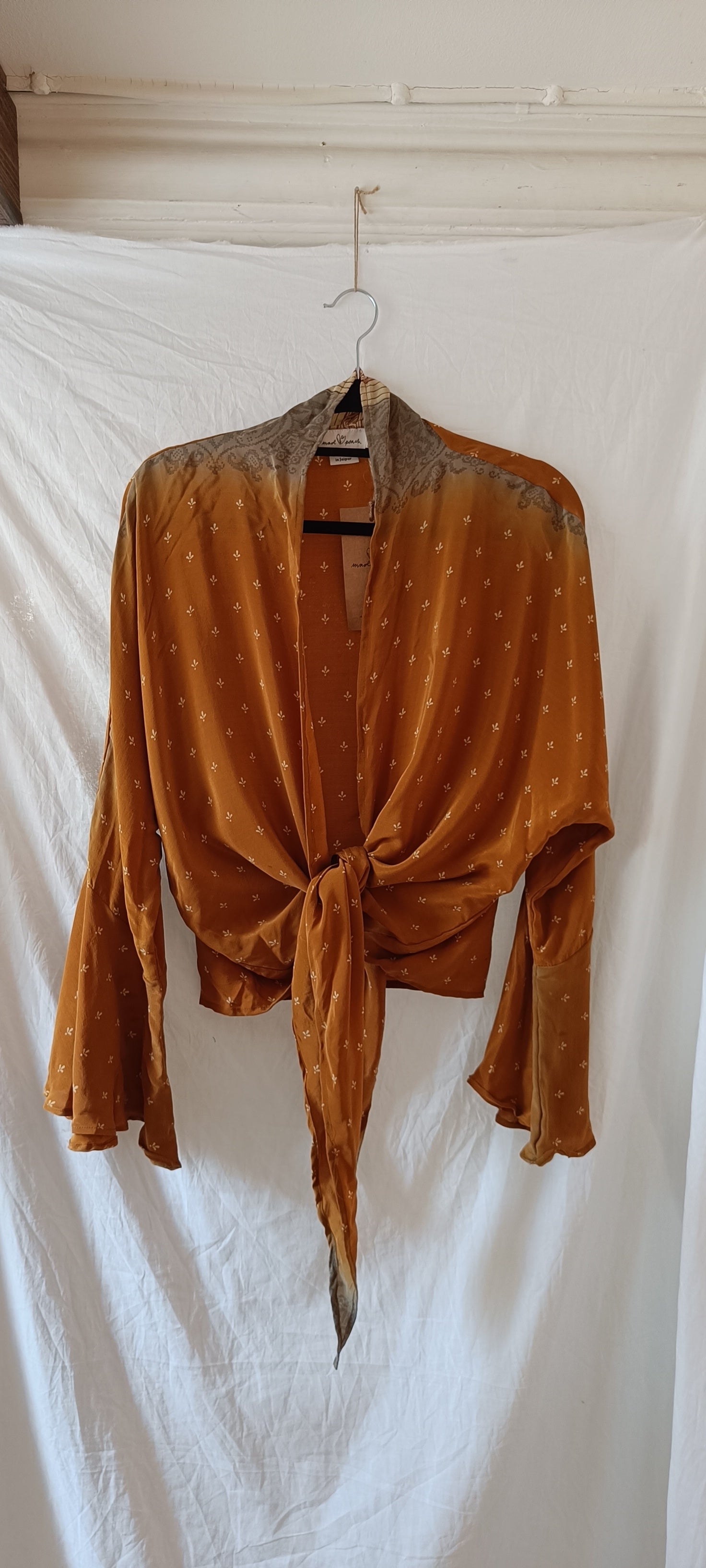 Helt unik knyttopp efter bästsäljande modellen Tie Top. Gjord av handplockat vintage silke från norra Indien. Tyget räcker enbart till en topp i just det här utförandet, vilket innebär att varenda en är helt one-of a kind. Toppen är fin att knyta framtill, "wrappa runt" sig eller bara låta hänga. Perfekt till jeans eller över en klänning.