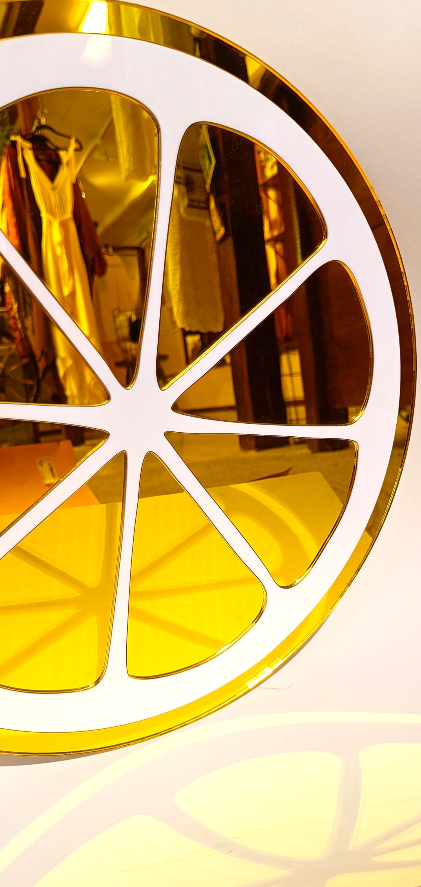 Fantastisk inredningsdetalj i form av en citron! Fästes med självhäftande tejp på baksidan, som du kan få bort och därmed sätta upp spegeln på annat ställe när det önskas. Fäst ej spegeln på tapet dock.