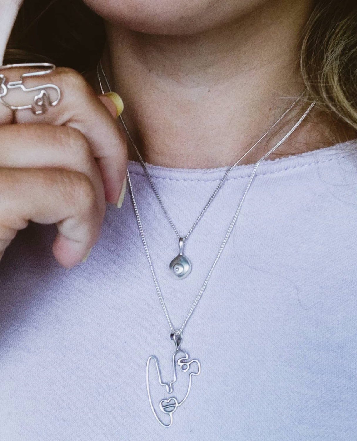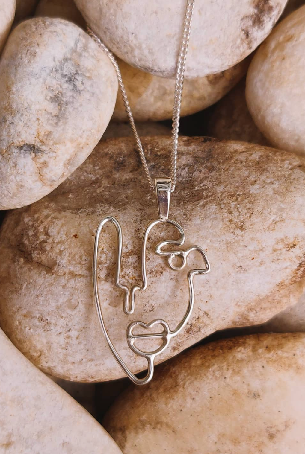 Coolt handgjort halsband i form av ett ansikte från Mad Peach.