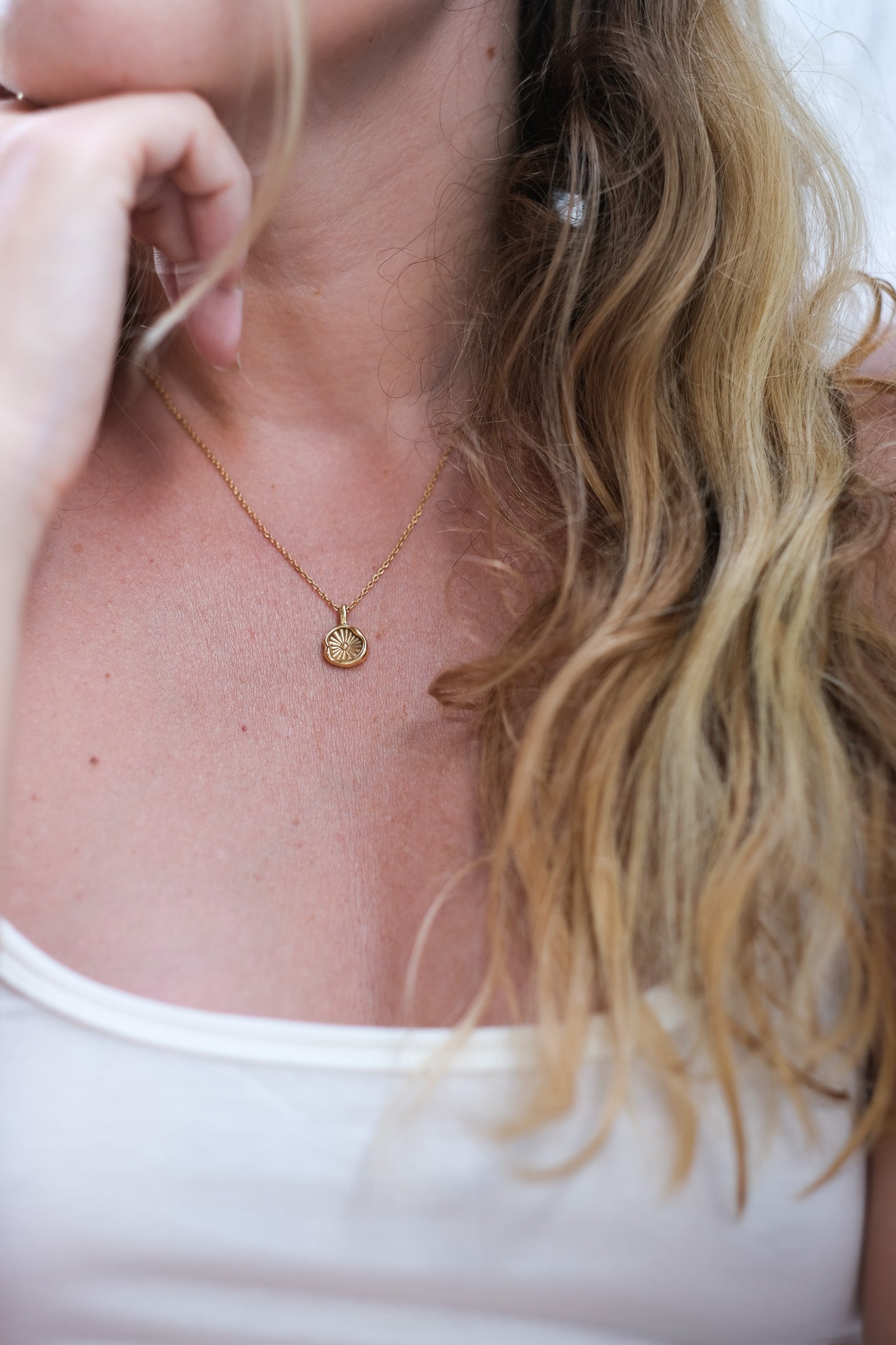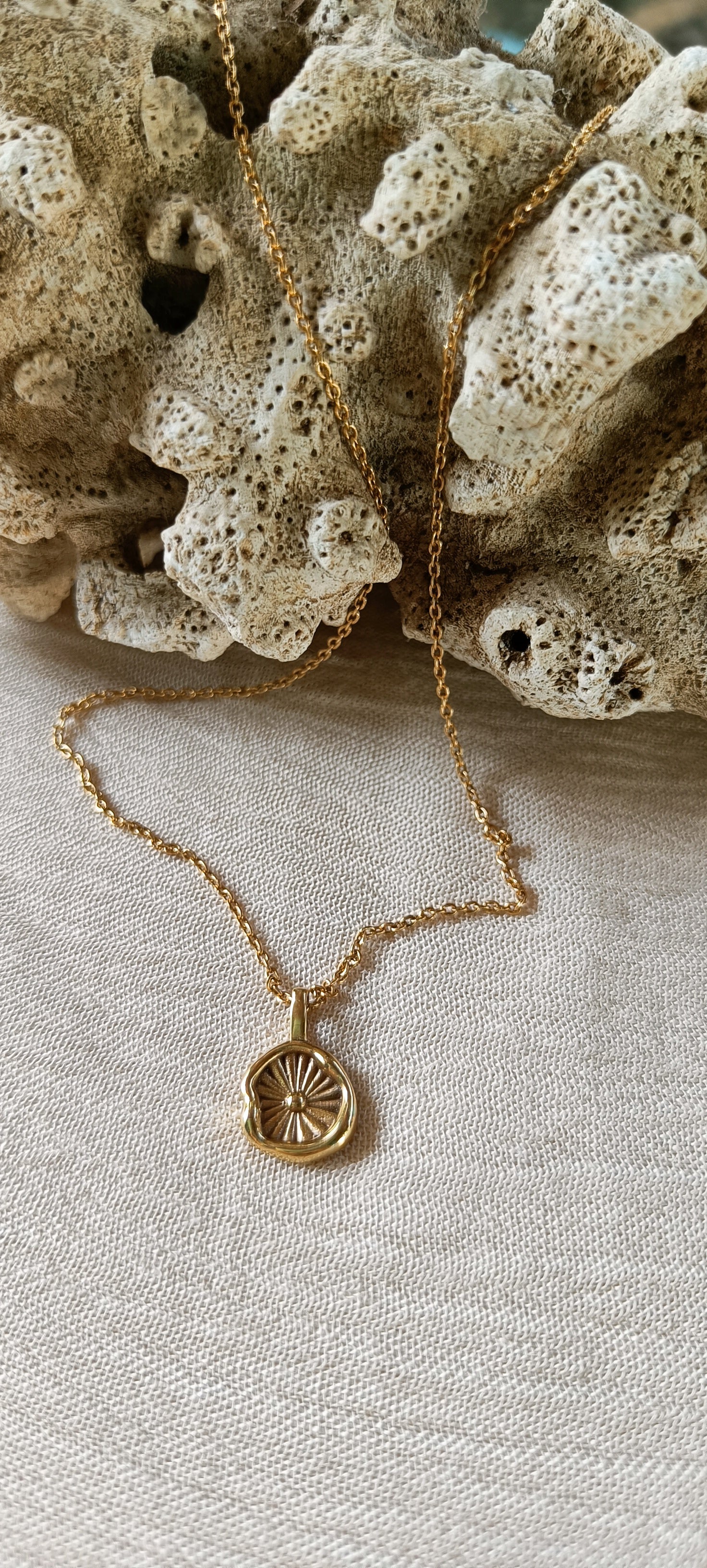 Halsband i form av en liten sol av Mad Peach. Detta solhalsband ger dig kraft när du behöver det <3!