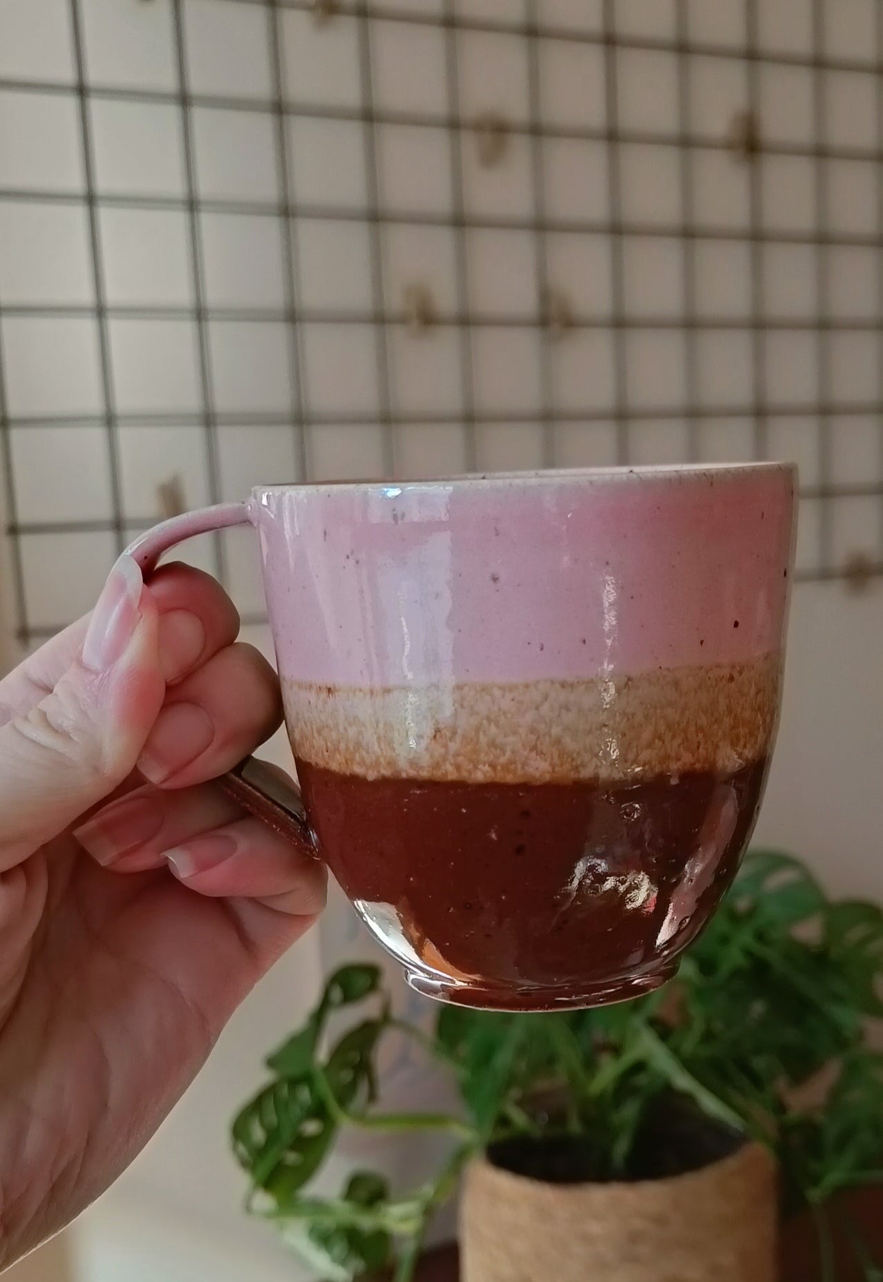 Den perfekta färgkombon, finns den på en kopp? Vågar iallafall påstå att denna i rost och rosa är en stark kandidat. Kopp i stengods som rymmer ca 3 dl. Handgjord så glasyren och kopparna skiljer sig naturligt lite från varandra.