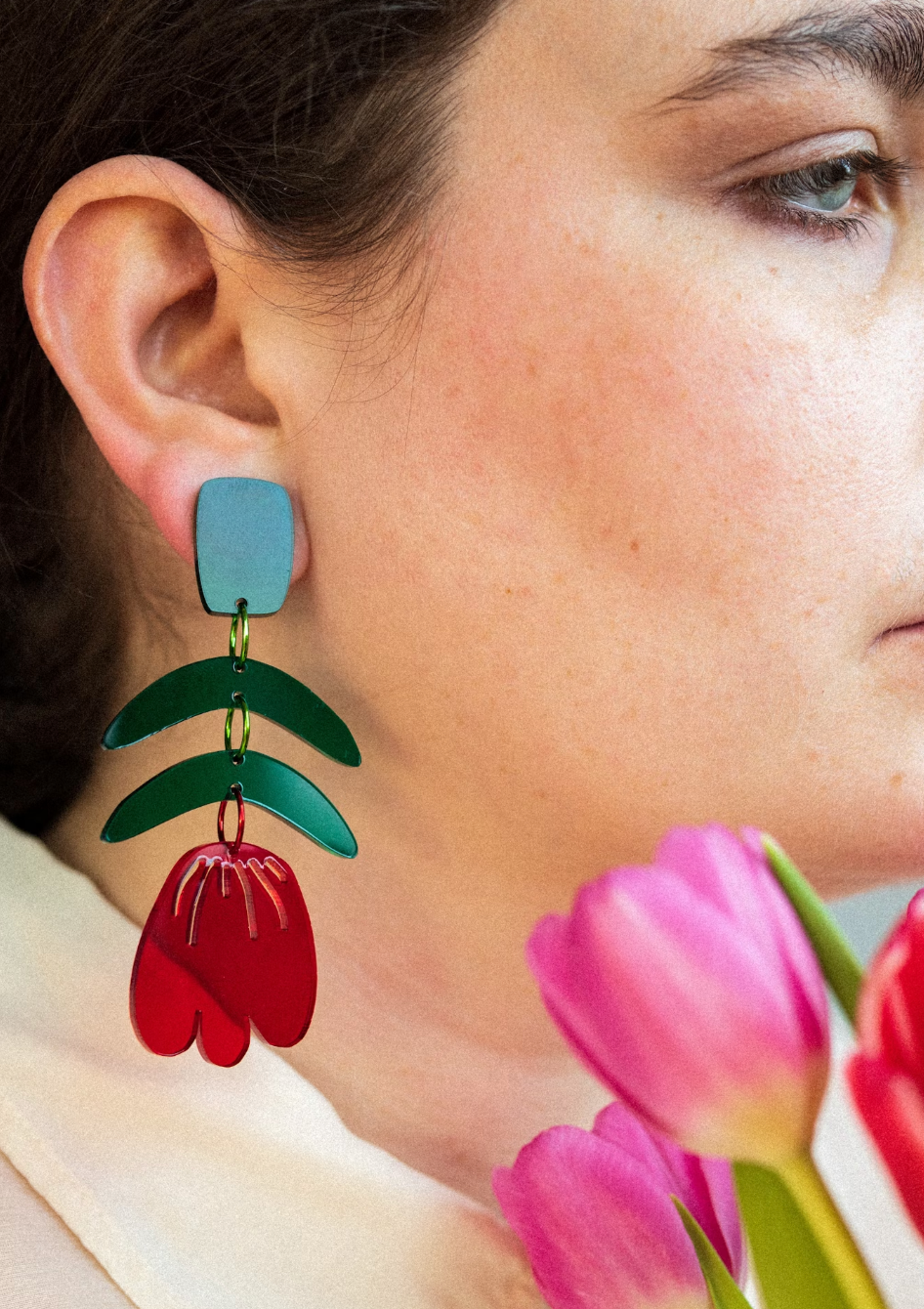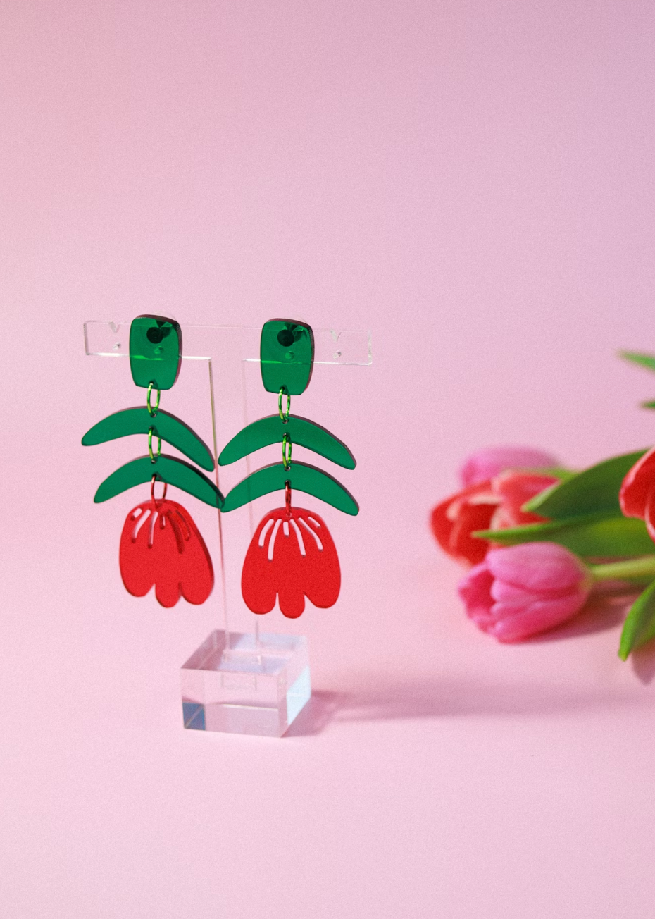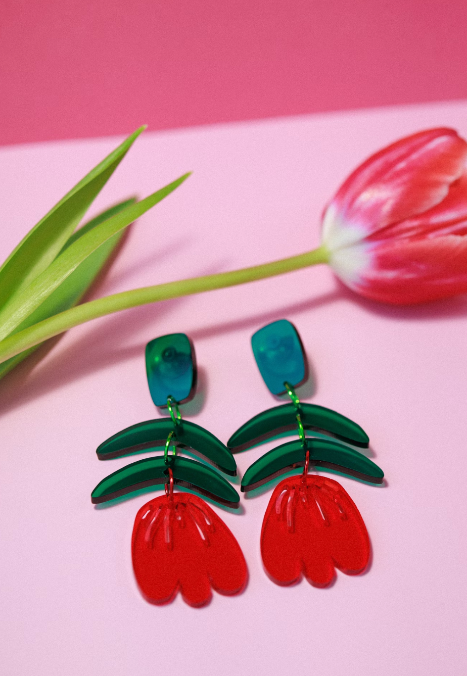 Ett statement örhänge i form av tulpaner. Superfint till vardag som fest! Örhänget är i akryl vilket gör det otroligt lätt att bära.