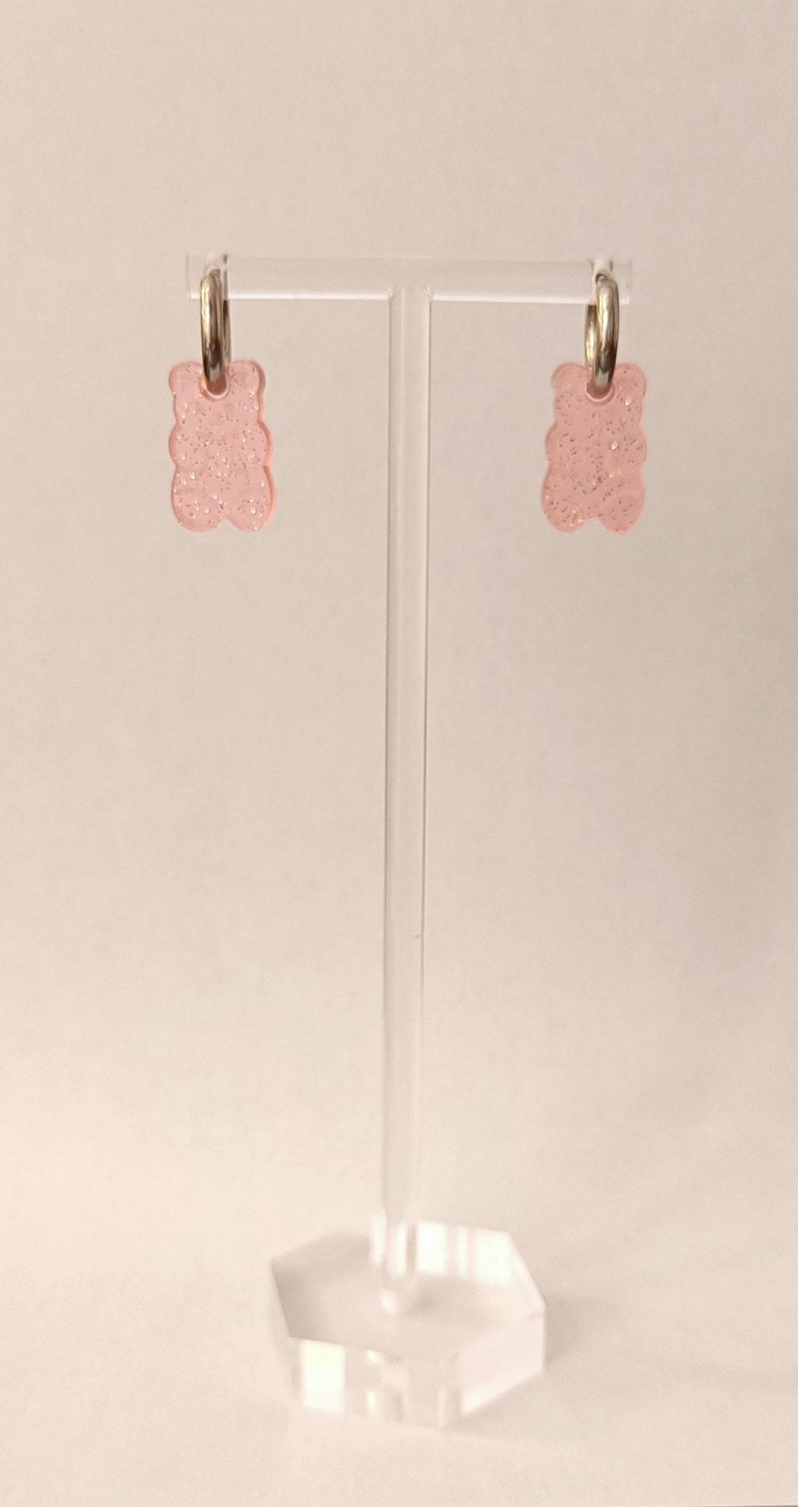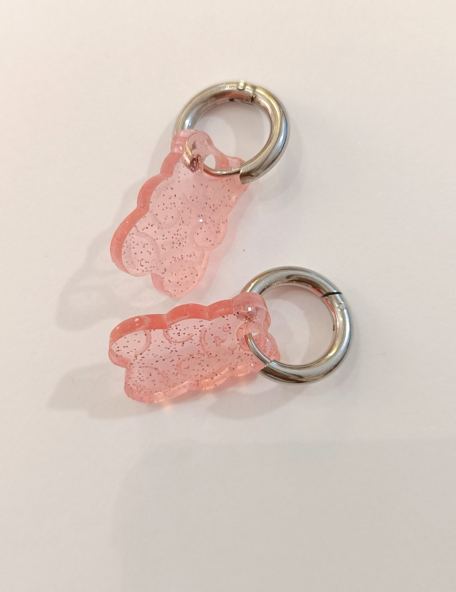 Ursöta örhängen i form av rosaglittriga gummybears, gummibjörnar. Bär ditt lördagsgodis i öronen!