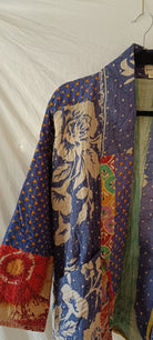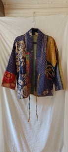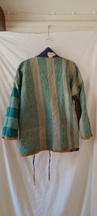 Helt unik kanthajacka i bomull. Gjord av handplockade kanthafiltar från norra Indien. Tyget räcker enbart till en jacka i just det här utförandet, vilket innebär att varenda en är helt one-of a kind. Jackan är vändbar (något jag älskade med 90-talets kläder och försöker få tillbaka!), har två stora fickor på ena framsidan samt snören som går att knyta framtill så jackan stängs.