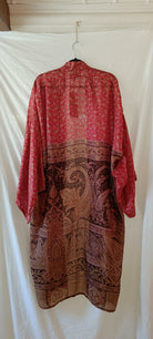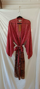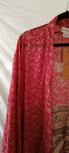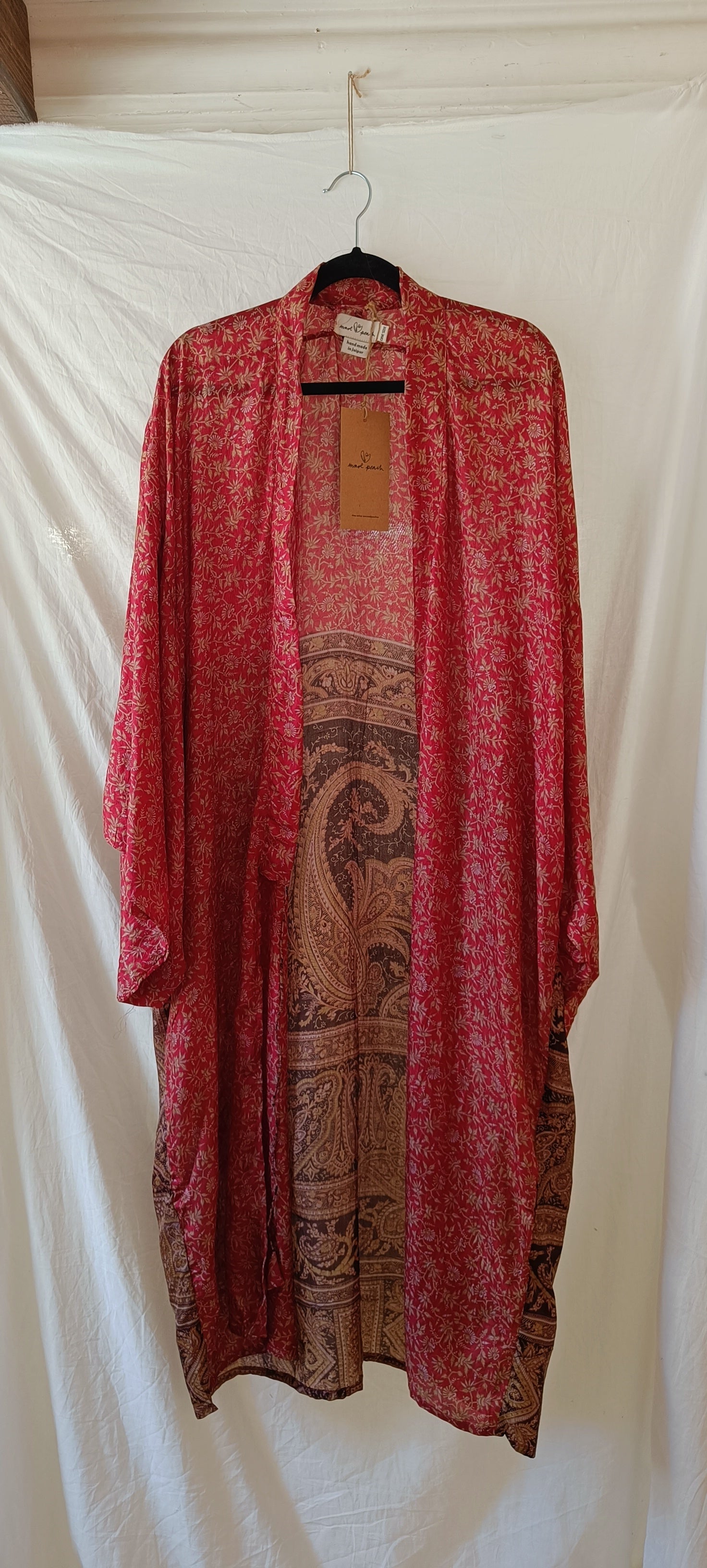 Helt unik kimono gjord av handplockat vintage silke från norra Indien. Tyget räcker enbart till en kimono i just det här utförandet, vilket innebär att varenda en är helt one-of a kind. Modellen är inspirerad av en traditionell japansk kimono och har ett "hål" vid ärmen, där brukade geishorna lägga sina tillhörigheter och använda ärmen som väska (rekommenderas inte med dessa dock då tyget är för skört). Kommer med ett tillhörande bälte för dig som gillar att "wrappa" kimonon runt dig som en klänning. Den är också perfekt till jeans eller över klänning.