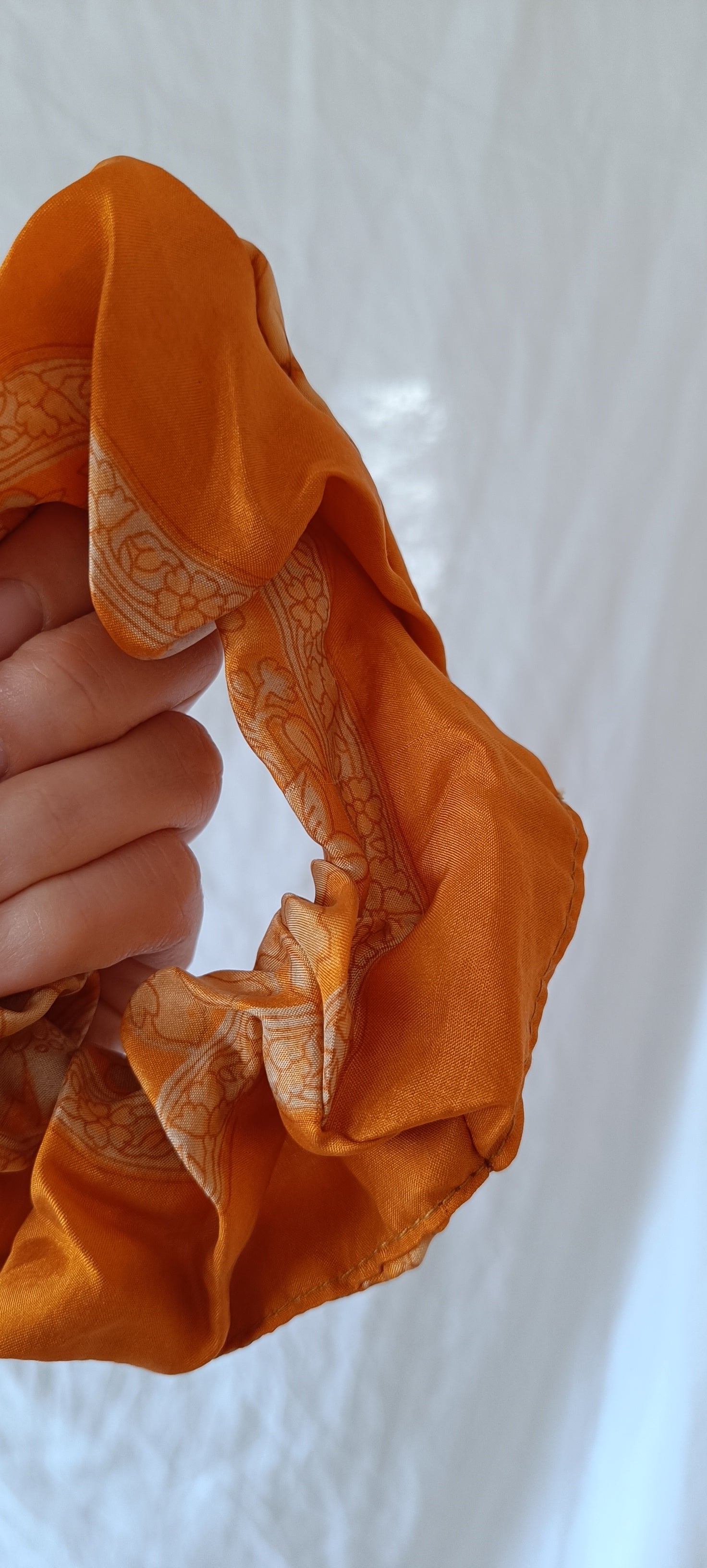 Helt unik scrunchie i vintage silke. Passar perfekt som hårsnodd eller som armband runt handleden när du inte använder den till håret. Pluspoäng för att silke sliter mindre på håret! Gjord av stuvbitar från handplockat vintagesilke från norra Indien.