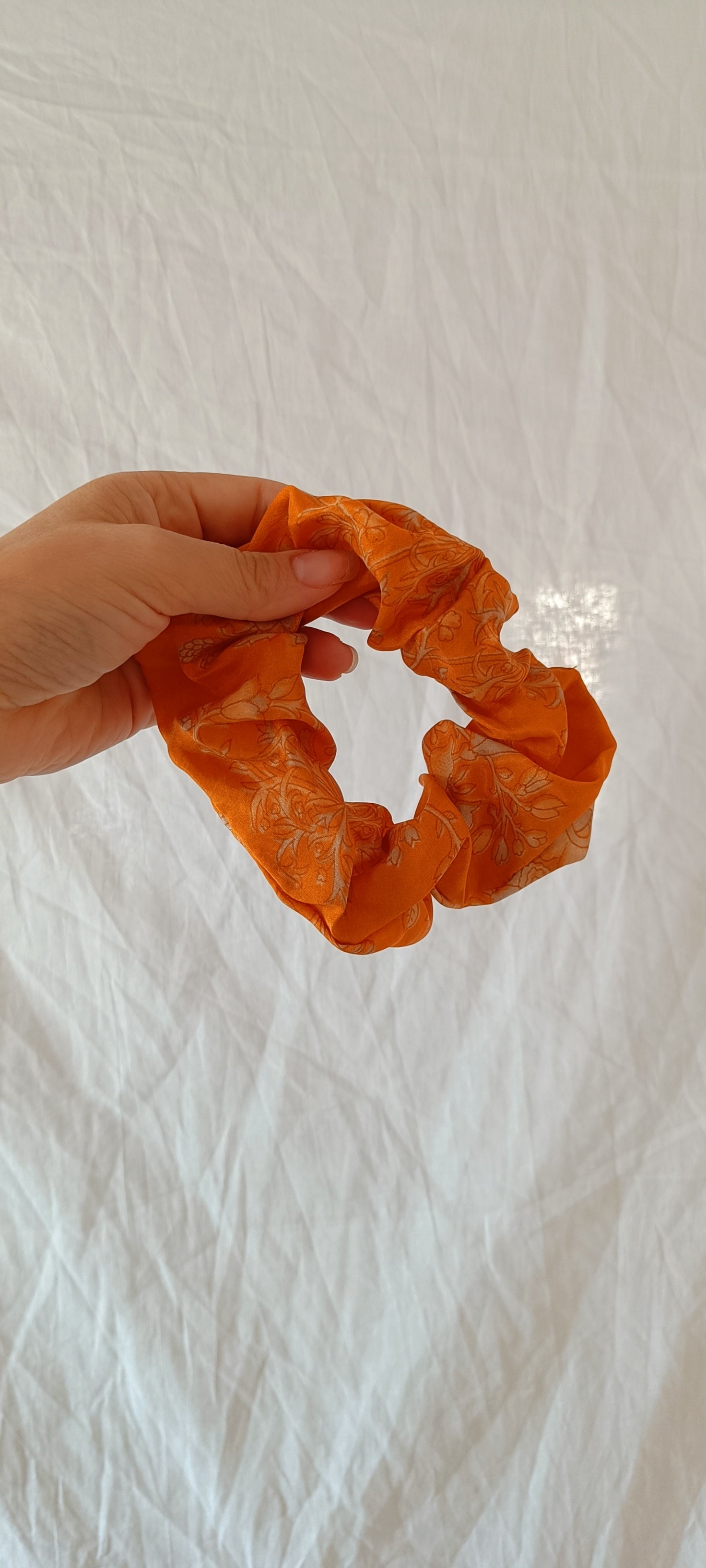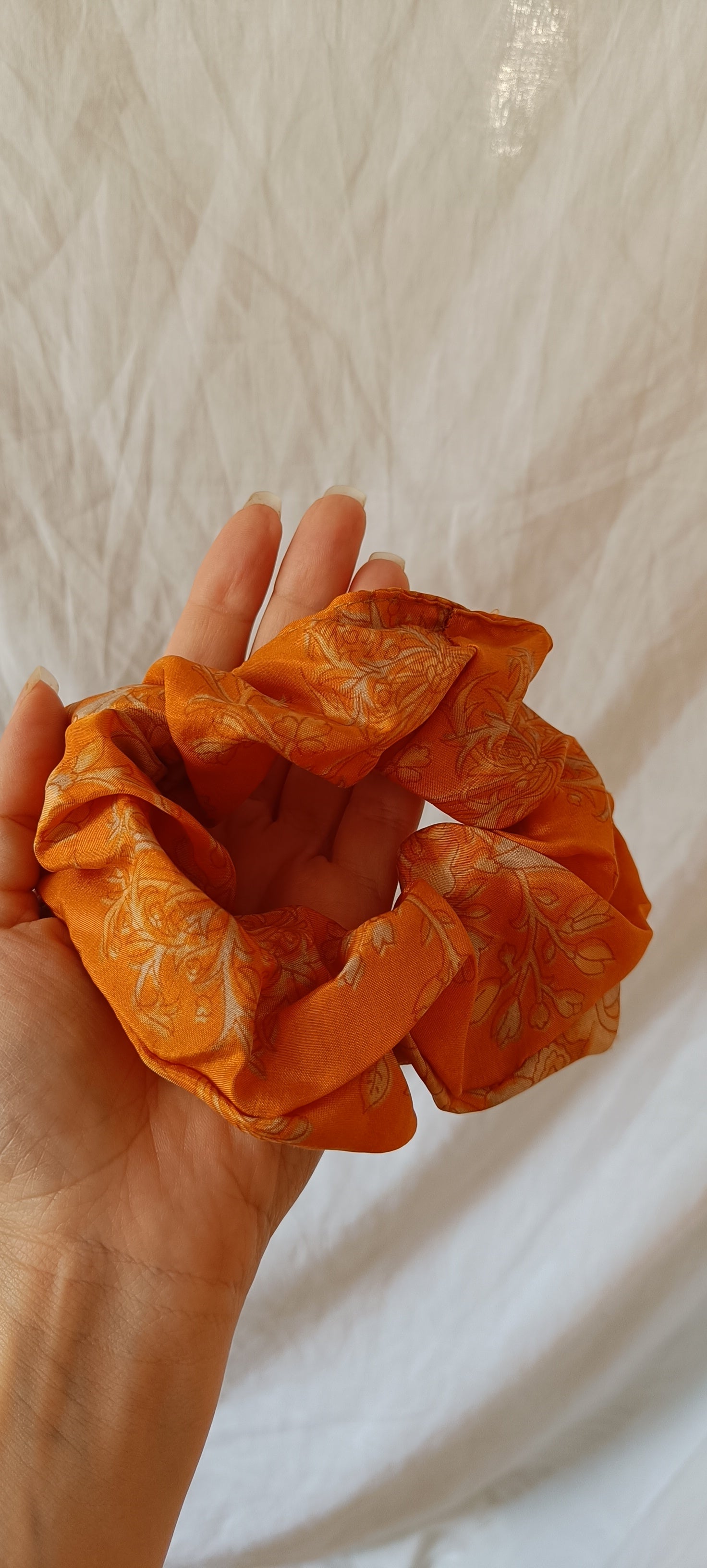 Helt unik scrunchie i vintage silke. Passar perfekt som hårsnodd eller som armband runt handleden när du inte använder den till håret. Pluspoäng för att silke sliter mindre på håret! Gjord av stuvbitar från handplockat vintagesilke från norra Indien.