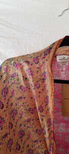 Då tyget är återbrukat silke kan det finnas mindre märken som är små tecken på den historia tyget bär på. På sista bilderna ser du hur modellen sitter på, första modellen bär normalt sett storlek S och andra modellen normalt sett storlek XL.