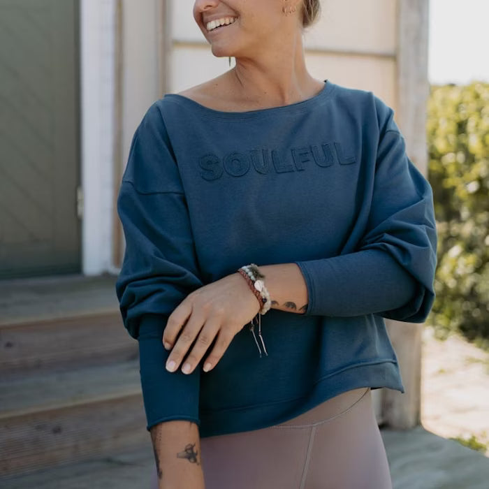 Tröja med statement SOULFUL påsytt över bröstet i samma ton som tröjan. Ämarna har en längre mudd som ger en "puff" längst ner.