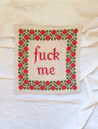 Handgjort broderi från Gotland, gjort på återbrukat tyg och med återbrukad tråd. Passar lika fint inramad som att sättas upp som det är. Våga dissa klassikern "hem ljuva hem" och satsa på ett broderi som sticker ut!